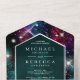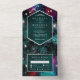 Outer Space Universe Teal Red Pink Galaxy Wedding All In One Invitation