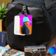 Pleasantly surprised at the quality of the luggage tag. It was exactly as shown and my daughter will be pleased. The address label on the back of the luggage tag was neat and clear.