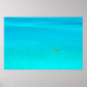 Poster print of a man paddling in an outrigger canoe boat in the bright blue lagoon of the tropical Island Bora Bora near Tahiti in the Pacific archipelago French Polynesia.