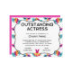 Celebrate exceptional student talent with the "End of Year Outstanding Actress Student Recognition Award." This elegant award is perfect for recognizing a student's dedication and outstanding performance in drama and theatre. Made with high-quality materials, it serves as a lasting memento of their hard work and achievements. Ideal for school ceremonies and drama clubs, this award inspires continued excellence in the performing arts.