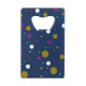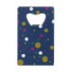 Un motif de cercles de différentes tailles en or, blanc, violet et vert est éparpillé sur un arrière - plan bleu foncé. Les cercles sont espacés uniformément et varient en diamètre.