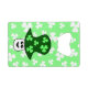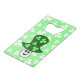 Un joyeux champignon vert sur un arrière - plan à motifs shamrock.