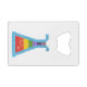 Une conception géniale de fiole d'arc-en-ciel placée sur un ouvreur de bouteille de carte de crédit.