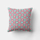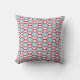 This throw pillow has a mid-century modern design of beet-coloured ovals connected into chains with turquoise concentric circles made of circle rings inside. Same design, different colours? Message me.