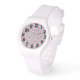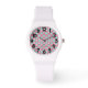 This watch has a mid-century modern design of beet-coloured ovals connected into chains with turquoise concentric circles made of circle rings inside. Same design, different colours? Message me.