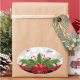 Background is Silver and Black with a festive holiday print with a red bow across the front. Black text of to: & From: on sticker for your gift recipient. Customize or buy as is.