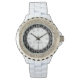 A unique oval linked pattern style watch in black and white hues. Customise with your name. This example reads Pamela. Uniquely designed pattern and design by Sarah Trett.