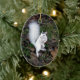This oval ornament features a photograph of a Brevard, NC white squirrel.