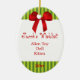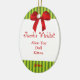 Un grand ornement pour se rappeler ce que le peu ceux a souhaité au delà Christmases. Il comporte les rayures vertes sur le dessus et le bas. Un graphique d'un ruban rouge se repose au dessus. Le centre est blanc avec le texte rouge. Vous customisez votre petit sa liste de cadeau là-dessus.