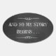 Stickers Oval Créez des autocollants personnalisés pour chaque occasion ! Customisez une variété d'images existantes ou ajoutez votre propre photo, logo ou texte. Le choix idéal pour tout message ou design, les autocollants ovaux sont parfaits pour les envois spéciaux, scrapbooking et l'affichage de votre art préféré. 4,5" x 2,7" (4 autocollants par feuille) Impression de haute qualité, couleur pleine blancheur avant résistant aux rayures, dos facile à peler et à coller Pas de commande minimale