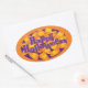 Autocollant de forme ovale illustré dans une impression de maïs bonbon Halloween orange et violet. Customisez cet objet ou achetez tel quel.