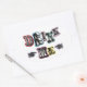 Autocollant blanc ovale avec l'image de l'expression "Buvez-moi" en lettres de bloc colorées et anciennes et deux mains, chacune avec un doigt pointant sur le mot "Moi". Voir la balise de faveur correspondante. Voir l'ensemble de la collection Wonderland Sticker dans les INVITATIONS | Section Stickers & Étiquettes.