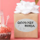 Géologie Ninja - humour de géologie autocollant. Design noir et blanc avec rock marmer lance étoile.