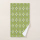 Cette serviette est recouverte d'ovales verts avec diamants et lignes gris et diamants verts sur un arrière - plan blanc.