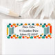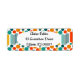 These return address labels have a mid-century modern design of ovals and circles in orange, gold, teal, and turquoise on a field of white. Want the same design with different colours? Message me.