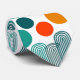This necktie has a mid-century modern design of ovals and circles in orange, gold, teal, and turquoise on a field of white. Want the same design with different colours? Message me.