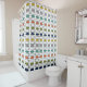This shower curtain has a mid-century modern design of repeating rectangles and ovals in retro colours.