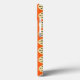 This phone case has a mid-century modern design of cream ovals and black starbursts on a field of orange.