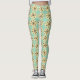 These leggings have a mid-century modern design of cream ovals and black starbursts on a field of sea green.