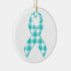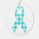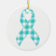 Ovarian Cancer Awareness Plaid Teal Ribbon Ceramic Ornament