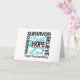 Ovarian Cancer Survivors Motto T-Shirts and Gifts in stylish scripted fashion with distressed undertones featuring a whimsical teal ribbon and empowering slogan of Faith, Hope, Determination, Love, Believe and Awareness to support Ovarian Cancer Advocacy while inspiring the survivor with supportive and encouraging words.