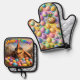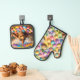 Add a prehistoric pop-up to your holiday baking with this fun and functional Easter kitchen set the potholder features a friendly territory guarding a nest of vibrant rainbow coloured eggs with a cheerful happy Easter greeting complementing. It is a matching oven mitt covered in a whimsical pastel pattern of decorated eggs, spring flowers and hidden bunnies whether you're roasting a feast or baking treats this heat resistance set brings a playful dinosaur themed twist to your spring de.