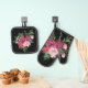 Black, Pink and Red Floral Design Potholder Oven Mitt Set