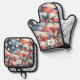 Great monogram oven mitt and pot holder. The front of this set is festive red, white, and blue (a decorative representation of some of the American symbols). Use the template to customize. Add your desired monogram or initial.
