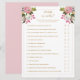 Romantic pink and white painted florals bridal shower game with gold text.