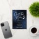 Over the moon baby shower party invitations in navy blue with real silver foil. Baby shower for a mother expecting a baby boy or girl. Celestial-themed party supplies with a moon and stars on a galaxy background.