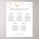 Welcome your shower guests with this seating chart featuring clouds and stars with a gold moon. Make room for more (or less) guests by clicking the "customize" button and decrease or increase the font size. Extra tables can also be deleted. In addition to the placement of each guest.