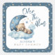Over the moon teddy bear Baby Shower square sticker with blue moon, puffy clouds and stars.