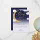 This is an adorable baby shower thank you card based on the phrase “We are over the moon”. The design features a cute handwritten script calligraphy font, a bright golden moon accompanied with gold stars and cute fluffy clouds in a twinkling starry night sky.