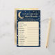 This "over the moon" game is perfect for anyone having a baby shower this year. The design features a golden moon with stars on a navy blue watercolor background and easy to personalize template wording. Simply give these game sheets out to your guests to play at the shower, whoever unscrambles the words first, wins a prize of your choice! Answers: 1) Diapers 2) Baby Shower 3) Wipes 4) Nursery 5) Blanket 6) Pacifier 7) One-sie 8) Swaddle 9) Activity Mat 10) Teether 11) Bassinet 12) Bottle 13) Rattle