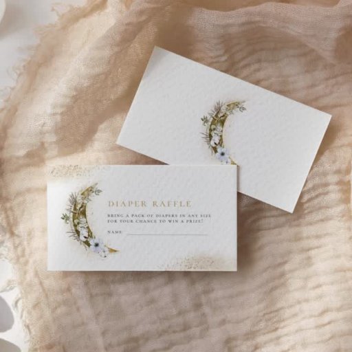 This gorgeous invite features gold text, a boho floral moon, gold dust and cloud accents.