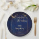 Over the Moon celestial arch starry night Baby Shower personalized monogrammed printed paper plates template. Gender neutral celestial baby shower theme baby shower tableware table decor.