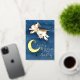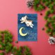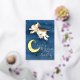 Watercolor and gold foil over the moon cow jump baby shower invitations. Cute whimsical cow jumping over the moon watercolor art painting in shades of white, brown, yellow and dark black blue. Personalize with your own baby showering event details. Ideal for a neutral unisex, nursery rhymes or a surprise themed baby shower. Other matching items available. © Original watercolor painting and design by Sarah Trett for www.mylittleeden.com