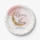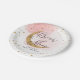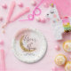 Over the Moon, Gold Glitter Pink Baby Shower Paper Plate