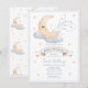 Over the Moon Gold Stars Blue Baby Shower Invitation