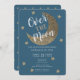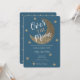 This cute "Over the Moon" baby shower invitation features midnight blue / navy blue background with a faux gold glitter crescent moon and stars. Change the background colour and personalize for your needs. You can find more matching products at my store.