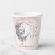 We are over the moon elegant celestial baby shower paper cups in pink and silver grey with a decorated moon and the baby face, diamonds and stardust. Girl baby shower tableware, easily personalize the text. - Kate Eden Art