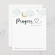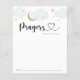 Baby shower activity card features watercolor blue clouds and gold stars. Prayers card prompts guests to share prayers for the parents to be as they prepare for baby.