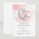 Over the Moon Silver Stars Pink Baby Shower Invitation