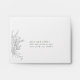 Elegant and chic return address envelope featuring a beautifully hand drawn floral bouquet in black paired with dainty typography in a subtle green to juxtapose the nature and design. Add a stamp and a number to refer back to and place inside your wedding invitation to make receiving your RSVPs a breeze!
