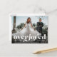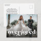 Overjoyed! For your most joyous holiday yet! This one-photo holiday postcard is perfect for newlyweds. It features bold white type with emphasis on the word "joy" in "overjoyed" and a horizontal photo. Great for sharing a wedding photo or a photo of your first holiday memories together as a married couple. The postcard back has room for a custom message to announce a change the date or an elopement. This design also works well as a holiday birth announcement or save the date.