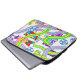 The sleeve is made of nice feeling material and seems very durable. I'm not sure how easy it'll be to clean, but the construction seems sound and the fabric is quick thick. I also like the double zipper. The printing is lovely and appears durable. The white on black contrast is nice, and the design very elegant.