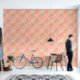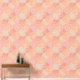 An overlapping design with a pastel peach colour and traditional Chinese fans.