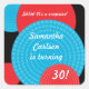 A smattering of circles in bright blue and redmake globular shapes against a rich black background. Customized text sits within the shapes, some of which have a radial pattern. Use as envelope seals or on favour bags for any milestone birthday. Great for teens as well as adults. Available in alternate colours with matching products.