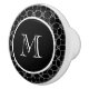 This sleek, contemporary ceramic knob features a pattern of thin white overlapping circles on a black background. The centre features a black background with a white monogram. Easily personalize this ceramic knob in the box provided.
