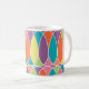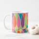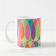 This mug has a design of overlapping eggs in Easter colours of purple, yellow, orange, pink, blue, and green. Pretty and festive for the season.